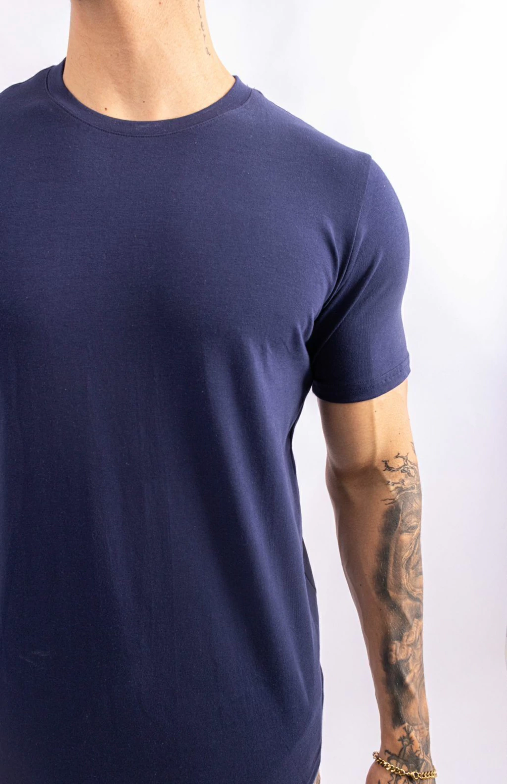 A T-shirt Giorno é a escolha perfeita para qualquer momento. Feita com uma mistura de algodão e elastano, essa peça oferece um toque macio e flexível, proporcionando liberdade de movimento sem abrir mão da elegância. Seu caimento slim modela o corpo de forma sutil, valorizando a silhueta sem apertar, o que garante um visual moderno e alinhado.